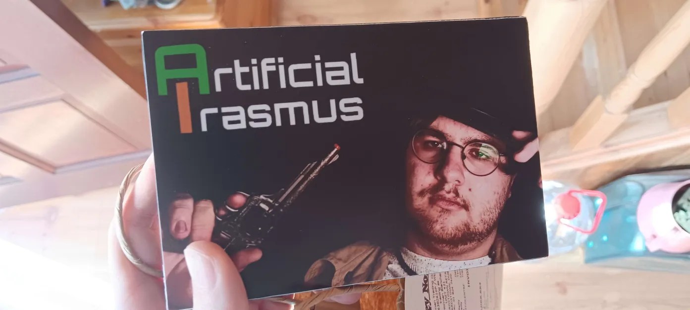 Props made for the short film ‘Artificial Irasmus‘, creating in-universe merchandise of the lead character Irasmus Kingston.