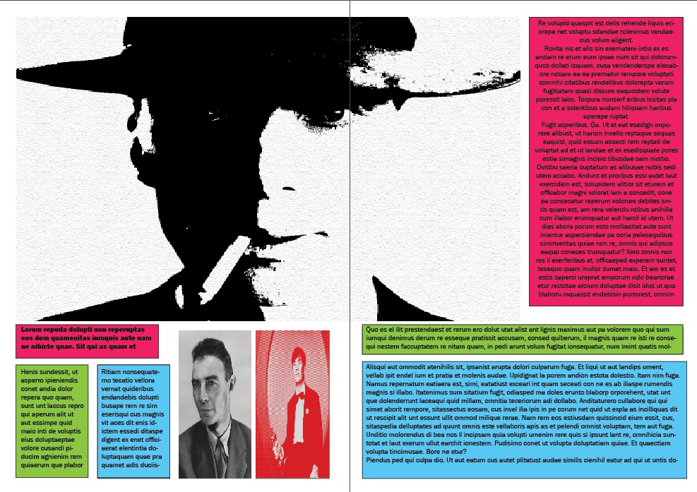 My magazine was meant to mimic the artwork of Roy Lichtenstein. This project took a serious “less is more” approach in terms of content and colour-scheme, which I have to thank Nicola Duffy for as that as it avoided the magazine being visual noise.
