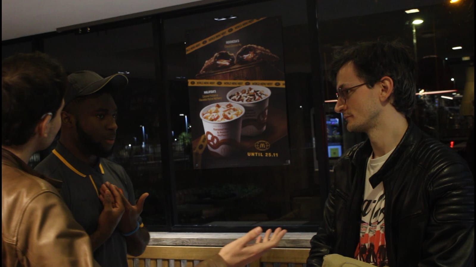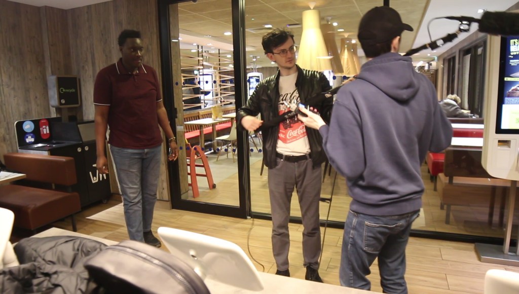 We also shot scenes to practice the tone of the scene and how our characters would speak. We started out by giving the outline of the scene, the outline of the characters, their dynamic, their history and then we’d allow ad-libbing to make the dialogue seem more natural but also some jump cuts to mimic Curb Your Enthusiasm. Below you will see some test footage we did using a made up scenario as our blue print, which would lead to the two characters arguing and a third party being annoyed by their behaviour.